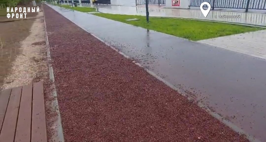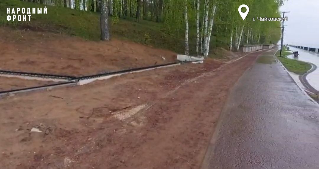 На благоустройство набережной Сайгатского залива реки Камы, на участке от городского пляжа до санатория "Чайка" в Чайковском, потратили 80 миллионов федеральных рублей. По проекту "О, берег" в 2022 году там обустроили места для прогулок, спортивные площадки, амфитеатр, "зелёные комнаты", пляж и другое. В целом зона пляжа, набережная и элементы благоустройства находятся в хорошем состоянии. Вопросы вызывают беговая и велодорожки, которые строились отдельным этапом: согласно сметной документации, она должна состоять из уплотнённого основания из щебня 70 миллиметров, ПГС и гранитного отсева размером от 0 до 5 миллиметров. В ходе рейда возникли сомнения в том, что дорожка была сделана как нужно, так как она раскрошилась. Также не пережила зиму живая изгородь.